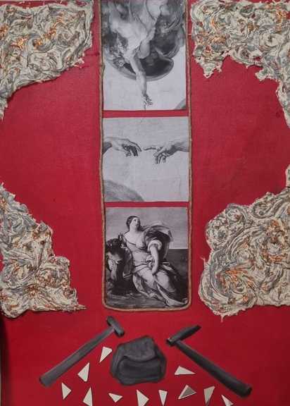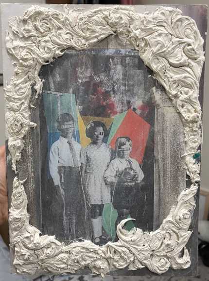 تابلو نقاشی چهره میکس مدیا با ترکیب رنگ و بافت، احساس و شخصیت سوژه را به تصویر میکشد.