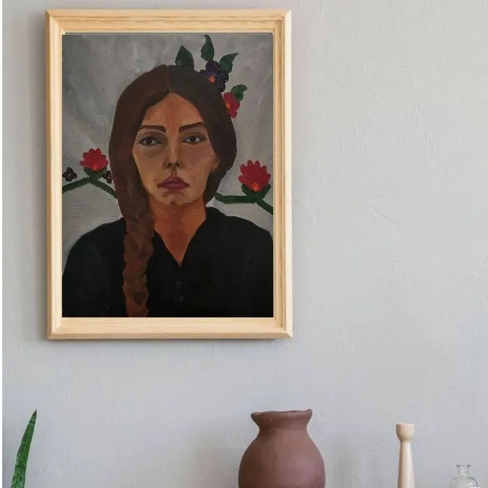 تابلو نقاشی چهره دختروگل بهترین گذینه برای افرادهنردوست و کسانی که عاشق نقاشی چهره هستند!