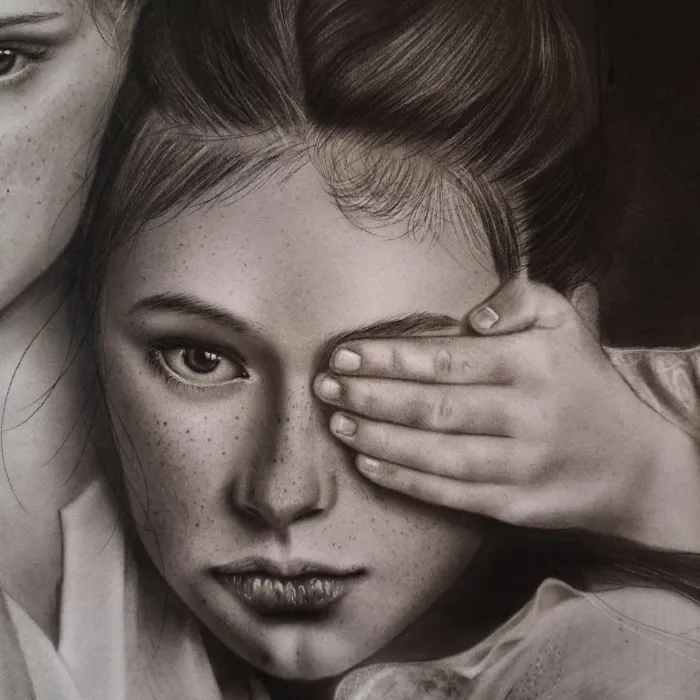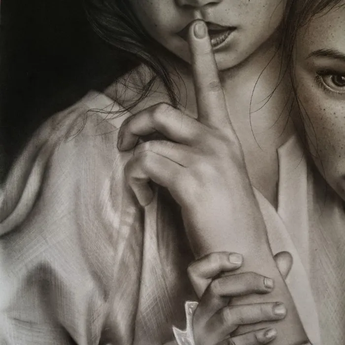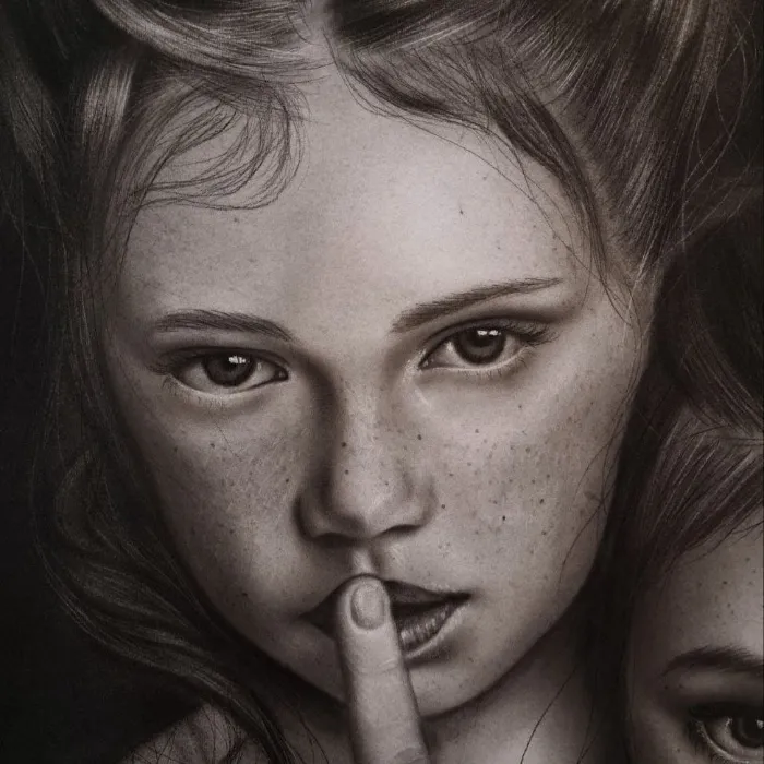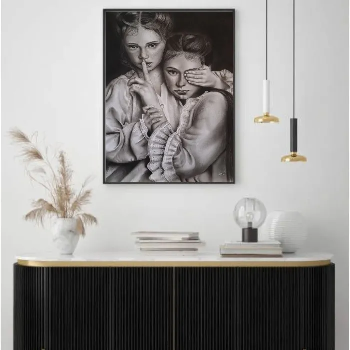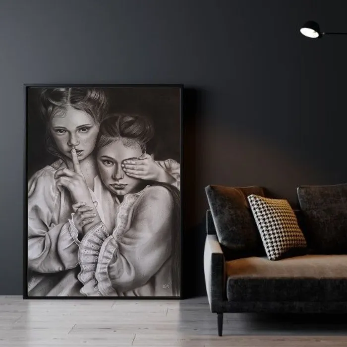 تابلو نقاشی شده سیاه قلم حرفه ای کودک